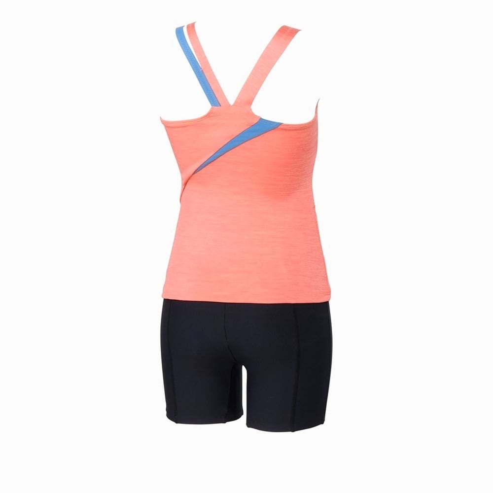 トップスは軽量かつ優れたストレッチ性の環境配慮型素材「Heather Stretch Pro(ヘザー・ストレッチ・プロ)」を採用。アシンメトリーのスキンストラップは肌あたりがよく、動きやすく、着脱もスムーズです。差し込みタイプのカップ付きで、これ一枚で完結。着脱もカンタンです。