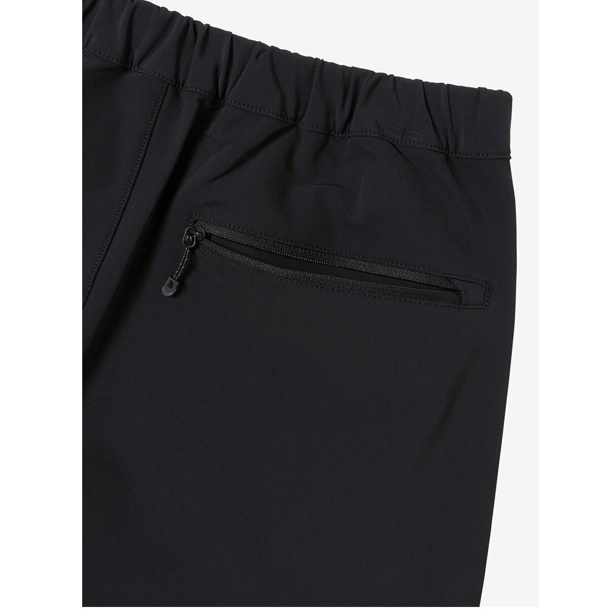 ポリウレタンとリサイクルナイロンを一部使用した生地は高いストレッチ性を持ち、ニットのような伸縮性と着心地のよさが特長です。左右サイドにファスナー開閉のベンチレーションが付き、衣服内のムレを効率的に排出します。両脇のファスナーポケットは、パックのヒップハーネスに干渉しないよう、ファスナーが下向きに閉まる仕様。裾はアジャスターコードによりフィット感の調節が可能です。