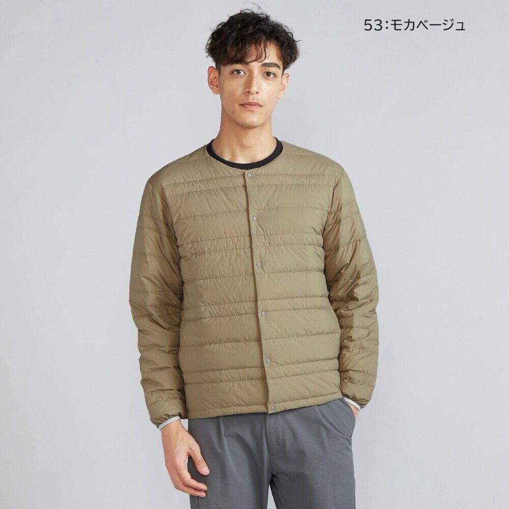 ノーカラーなので重ね着もしやすく、マフラーやネックウォーマーとも合わせやすいデザインです。