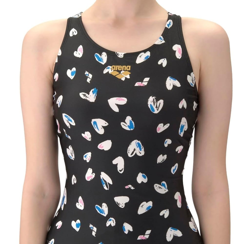 アクアビクスや水中ウォーキングなど、健康やリフレッシュのためにプールでのエクササイズを楽しむフィットネススイマーにおすすめのフィットネス水着。上下が分かれたセパレート水着で、着脱が簡単。Y字型のバックスタイルは、肩甲骨が動かしやすく泳ぎやすい。3段階で調整可能な大きめカラースナップがトップスとボトムスをつなぎとめてくれるため、水中でもめくれ上がりにくい。「差し込みパッド」は取り外し可能で、パッドポケット内に収まる設計。脱ぎ着がしやすく、水中でもしっかりフィットする安心感のある仕様。大人の女性にも似合う手書き調のハートモチーフをプリント。可愛さとカッコよさの程よいバランスのハート柄が、いつもと少し違う雰囲気を演出し、スペシャルな一枚に。