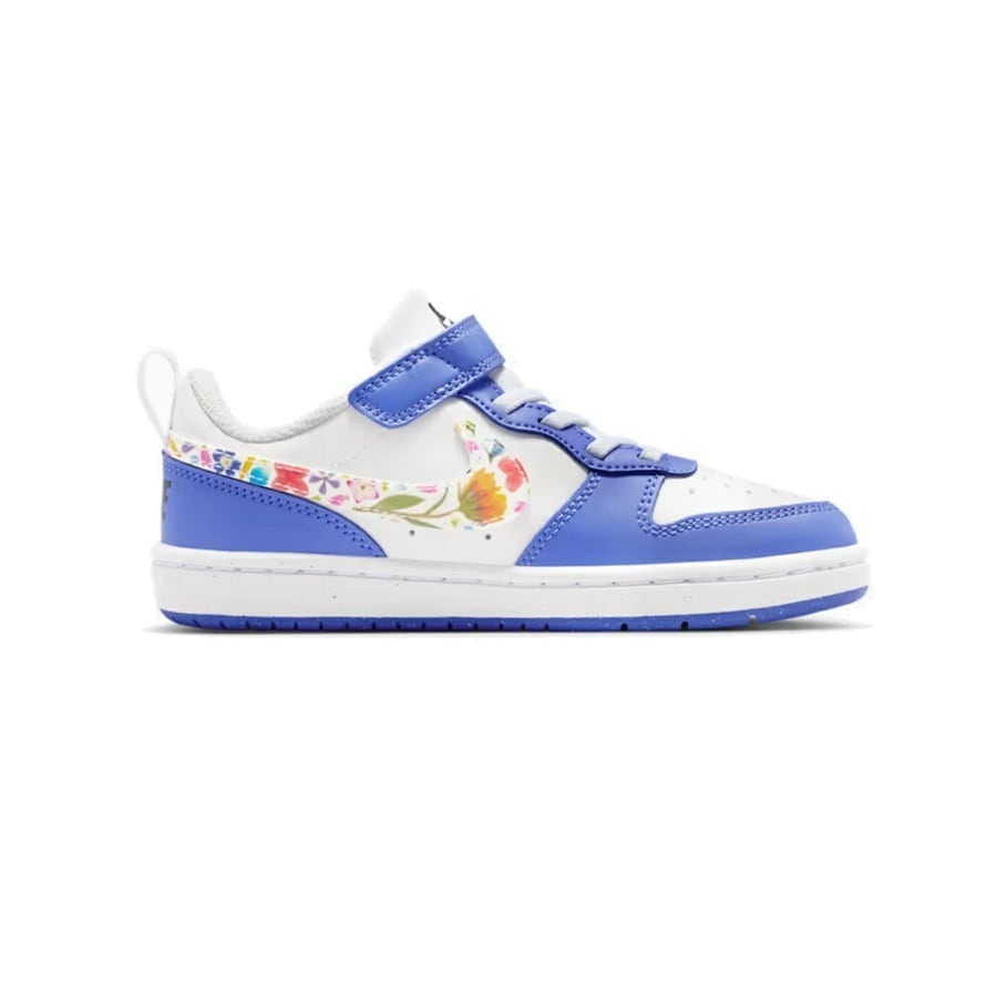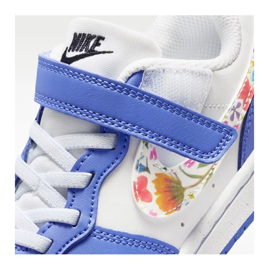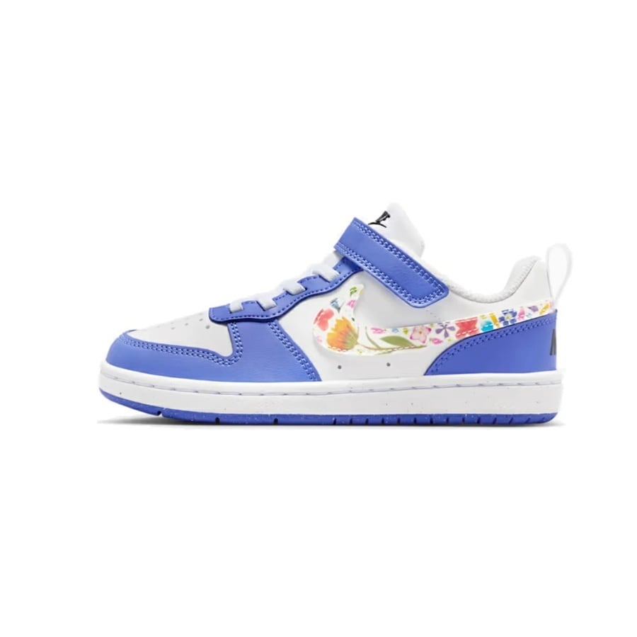 - ナイキコートボロー LOW FL[ジュニア]IQ0879 100ホワイト/サファイア 可愛い花柄 スニーカー