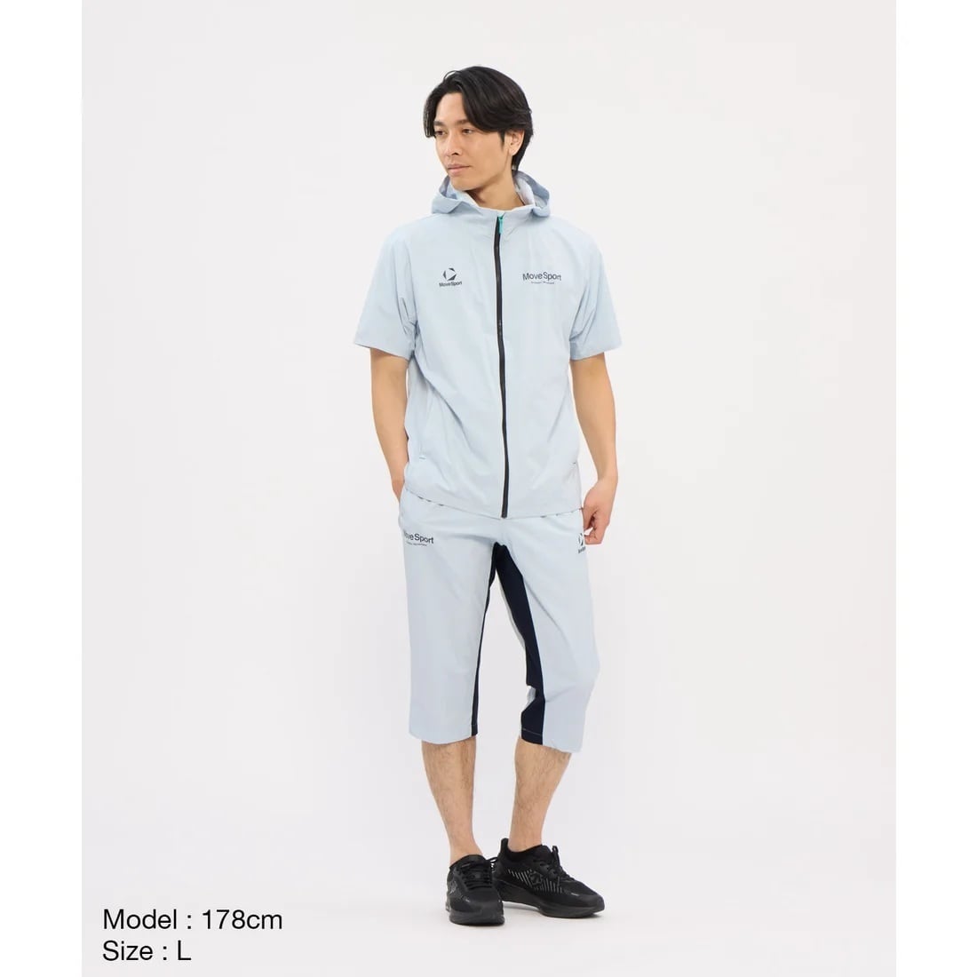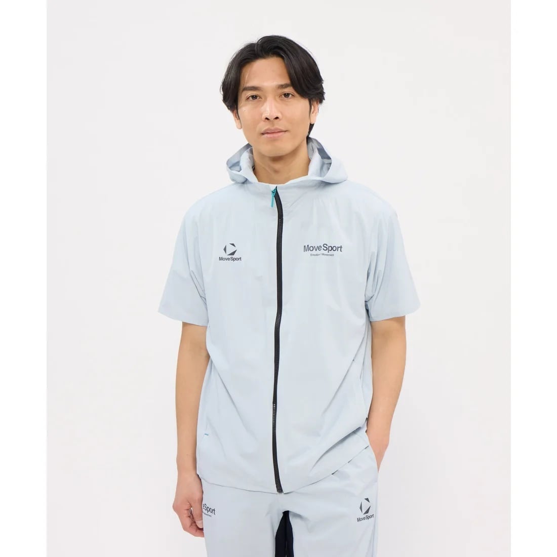デサントのブランドであるムーブスポーツの男性用半袖パーカー。