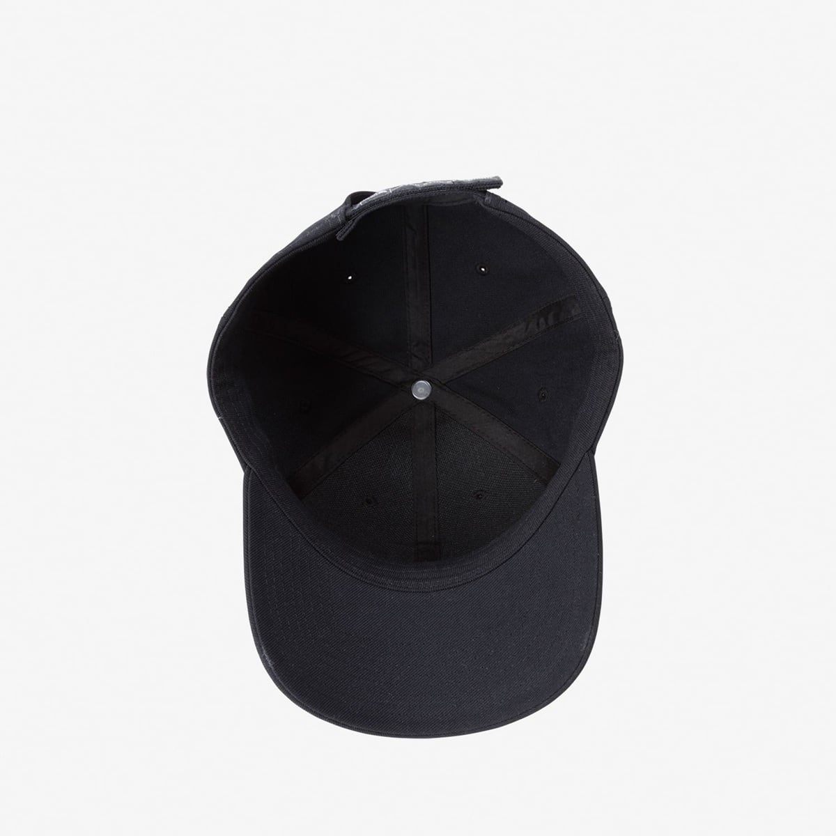ラウンドしたツバ/スクエアワッペン/後部面ファスナーによるサイズ調整機能