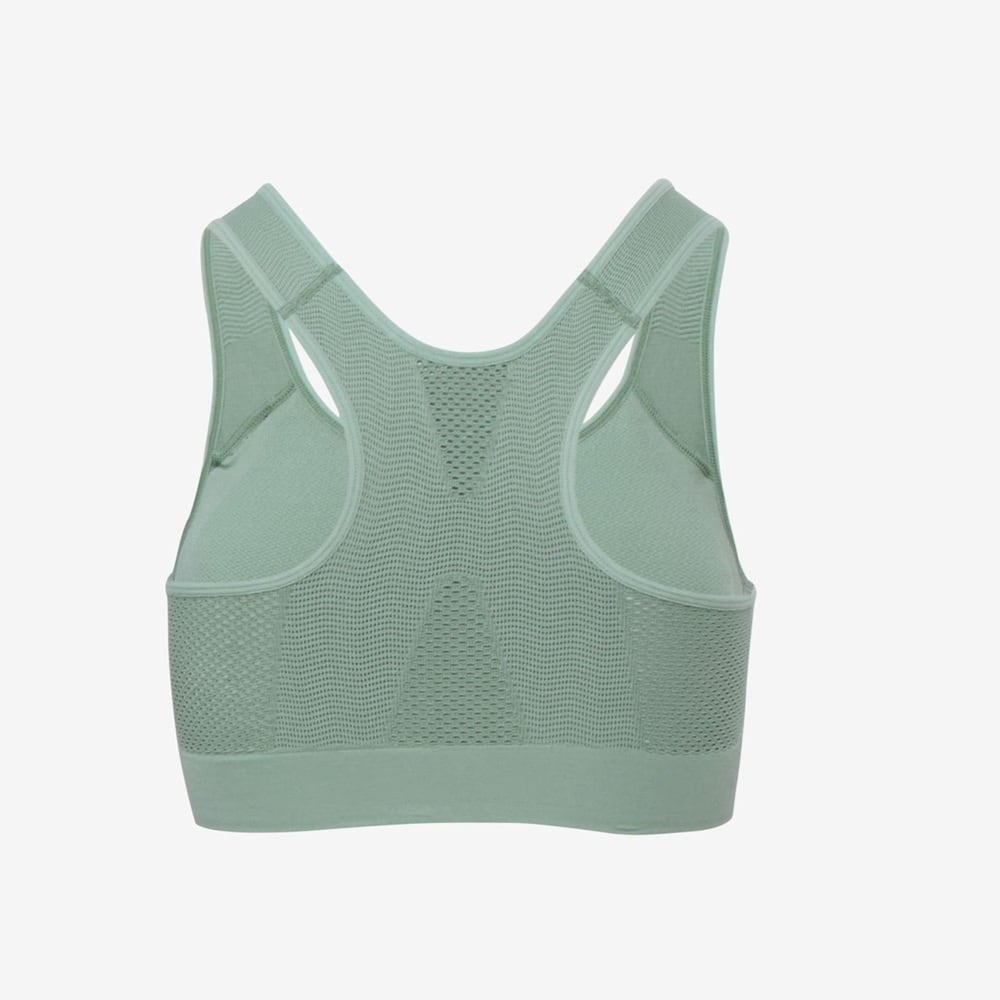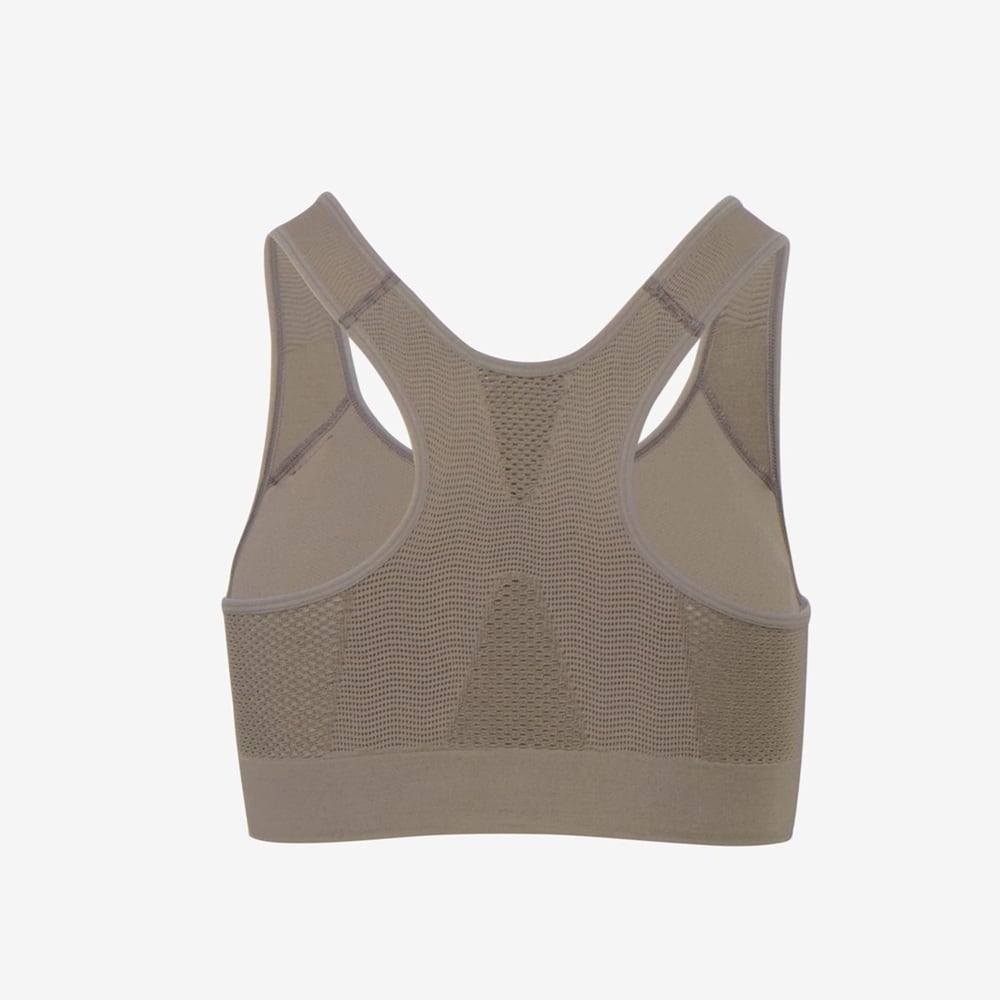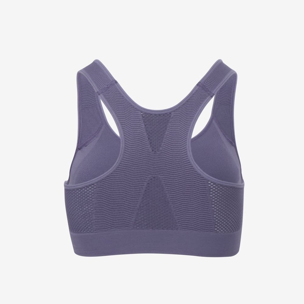 適材適所で編地を変化させて快適性を高めた、編み立て成形タイプのスポーツブラ。