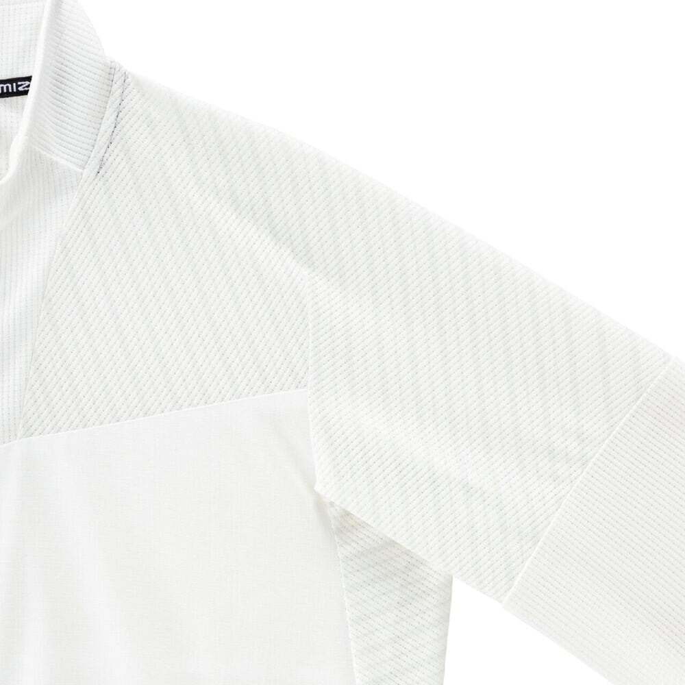■ドライエアロフロー生地を上身頃、両脇下部分に使用する事で汗をかいた状態でも通気性を保ち快適性をキープ。