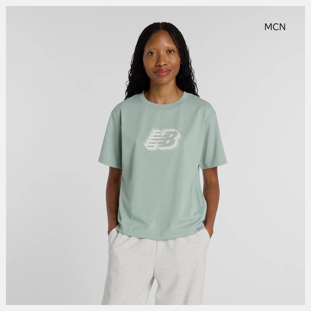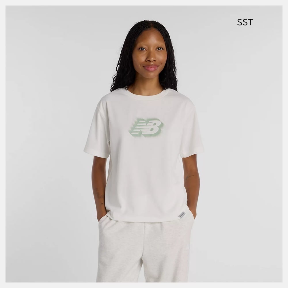 ニューバランスの女性用半袖Tシャツ。