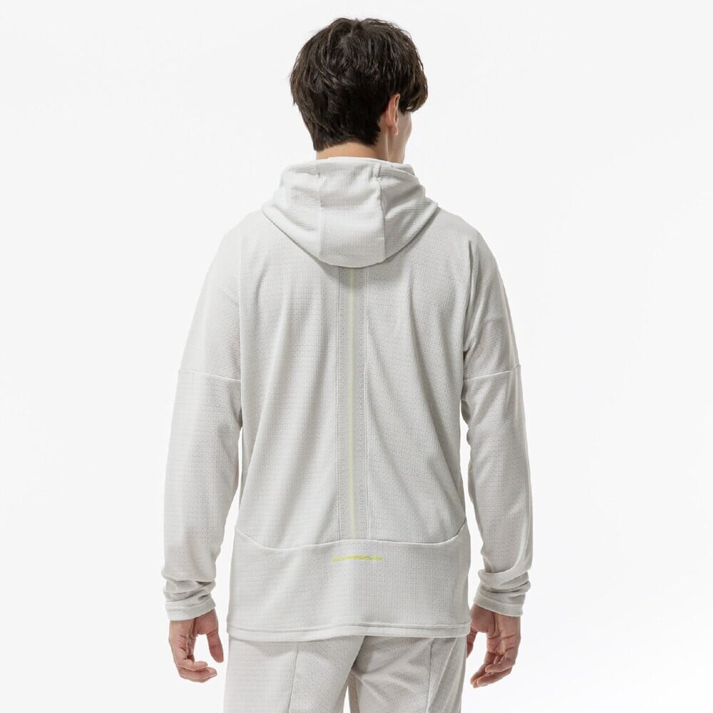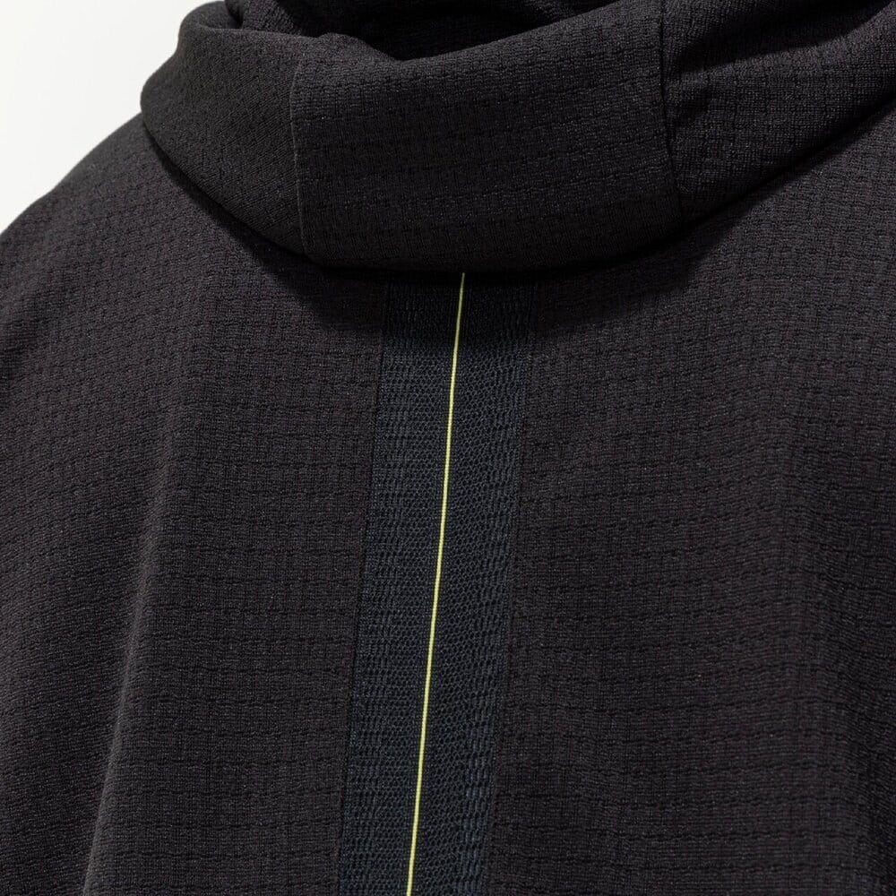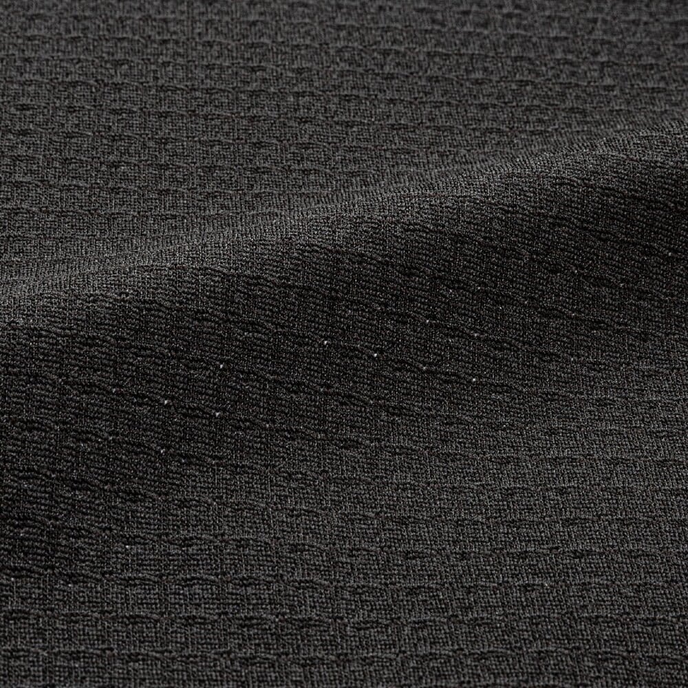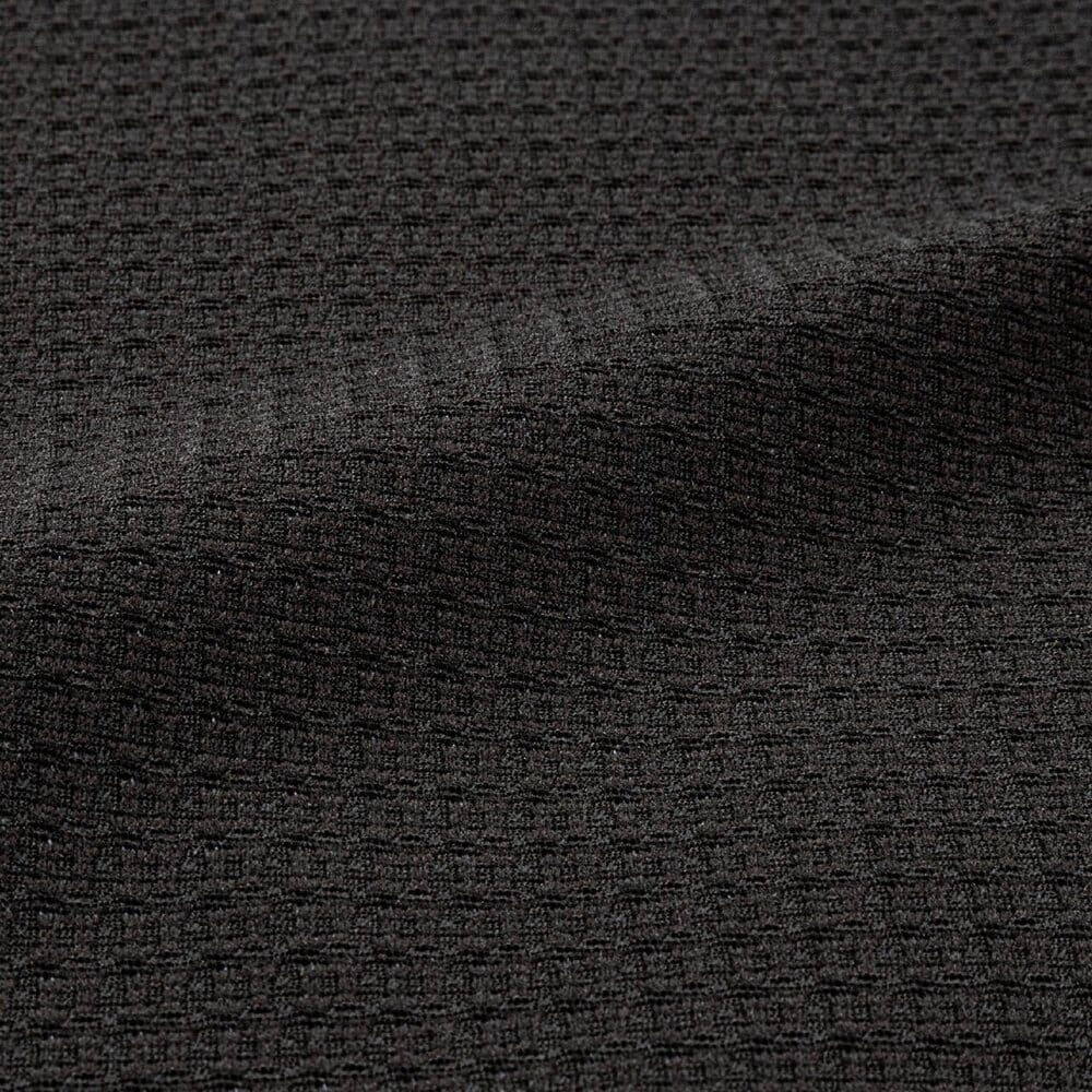 汗をかいた状態でも通気性を保ち身体の放熱性を高め運動時のパフォーマンスと快適性をキープ。肌面凹凸構造により肌離れの良さを実現したジャカード素材を使用。