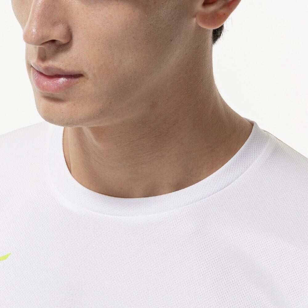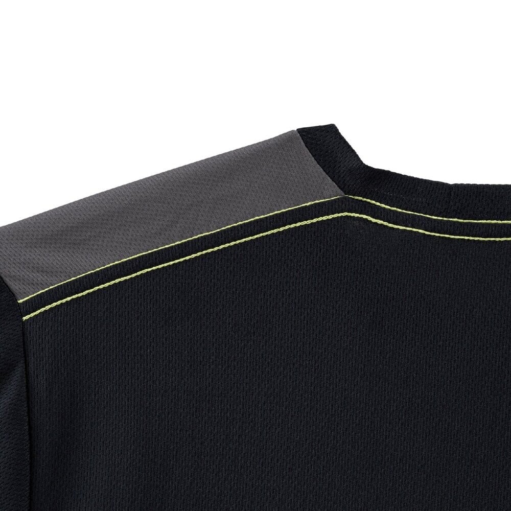 吸汗速乾素材と汗で蒸れやすい脇下部にドライエアロフロー素材を配置し運動時の衣服内快適性に配慮。