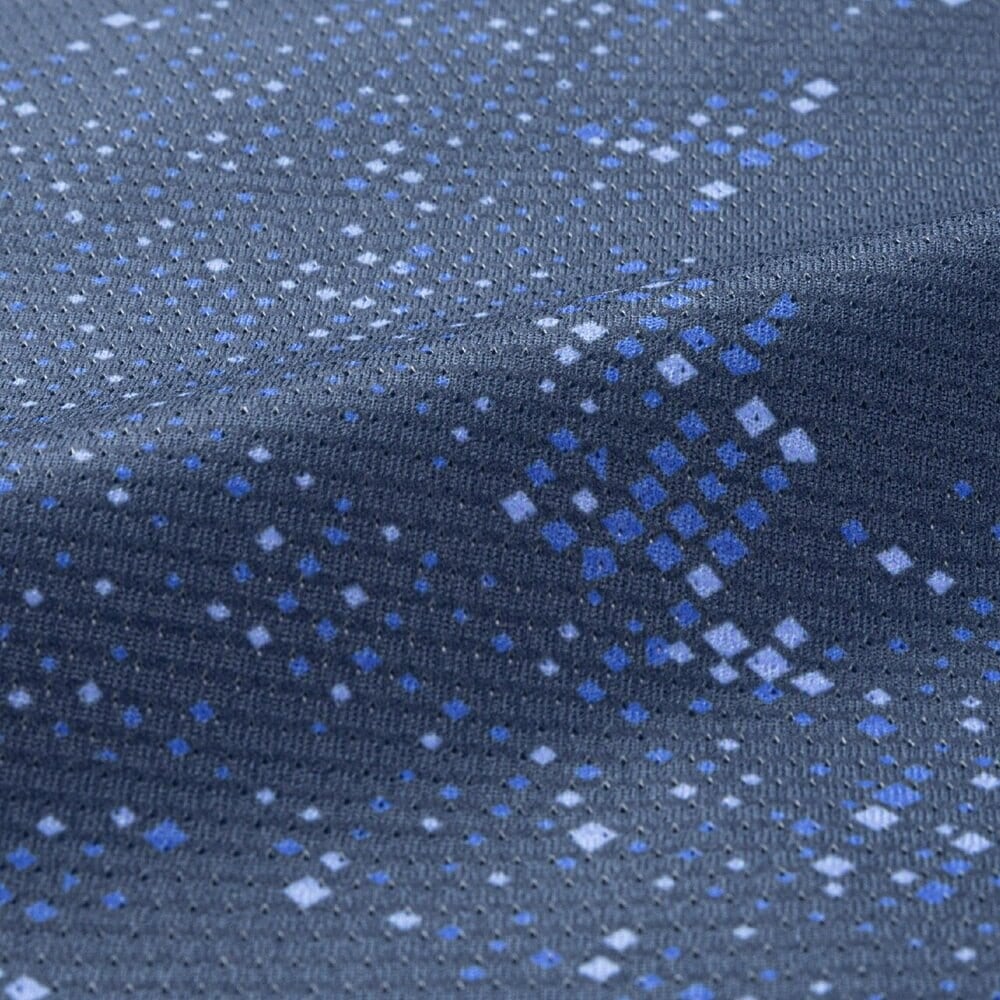 汗の膜が生地の通気性を低下させ、衣服内の温度上昇やべたつき感などの原因となっていることに着目し開発された素材『ドライエアロフロー』。ドライエアロフロー素材の中でも、ランニングに特化した軽量感のある素材を採用しています。前後に再帰反射プリントを使用しているため、ナイトランにも配慮した設計になっています。