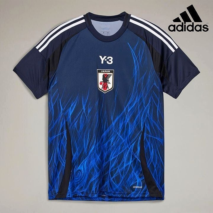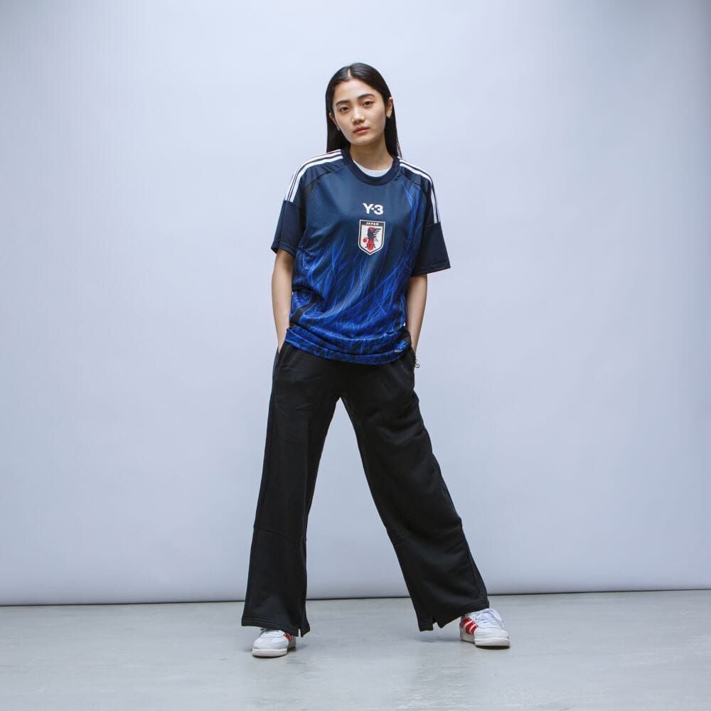 日本代表チームが一つの炎になってうねりを上げて燃え上がる。チームのホームカラーのブルーをベースに、日本の力強さを映し出すかのような、うねりを上げて燃えるハンドペイントの青い炎のグラフィックをあしらった、日本代表のレプリカジャージー。優れた吸湿性を発揮するAEROREADYテクノロジーを採用した、サポーターが快適に応援できるようにデザインされた、Y-3とのコラボレーションアイテム。フェデレーションキットでは初となるY-3ロゴとサッカー日本代表エンブレムが胸に誇らしくあしらわれた、新しいデザイン。